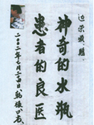 凡尊重中國(guó)古代養(yǎng)生智慧的患者,堅(jiān)持“已饑方食”和定時(shí)主動(dòng)補(bǔ)水者,均可祛病康復(fù)。如牡丹江醫(yī)學(xué)院87歲的張鵬圖飲用半年后高血壓未痊愈,陸江與他通話交流,了解他原先每日主食4兩,建議他用“已饑方食”減少主食肉食量,他理解后,將每日主食減為3兩,少吃兩塊肉,飲用一年治愈26年的冠心病和高血壓。他2003年5月31日來(lái)信說(shuō):“飲用卓康小分子團(tuán)水是根治高血壓、冠心病、糖尿病的一把金鑰匙,是填補(bǔ)醫(yī)學(xué)空白,為人類造福,應(yīng)推廣該產(chǎn)品。”